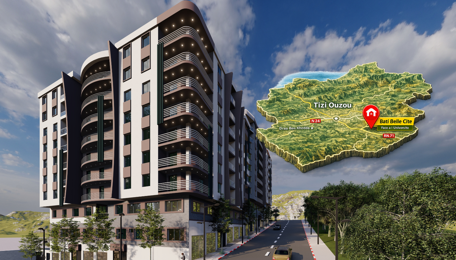 La résidentiel LA DIASPORA est une promotion immobilière moderne, idéalement située en face de l’Université, au cœur de la ville. Grâce à son emplacement stratégique et à ses finitions de qualité, vous profitez d’un cadre de vie confortable et accessible, parfait pour habiter ou investir.